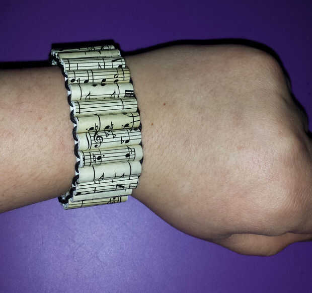 Hay muchos oficios en que se puede utilizar este papel - joyería, tarjeta que hace, scrapbooking, decoración y más! Echale un vistazo esta pulsera de bolas de papel fresco que hice :)
