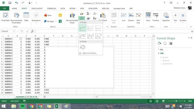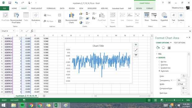 Usted puede elegir los gráficos según lo que está tratando de analizar. Sólo cubre la trama básica aquí, pero hay muchas opciones en cuanto a los tipos de gráficos que puede crear. En este ejemplo, se parcela los datos del acelerómetro de eje x.