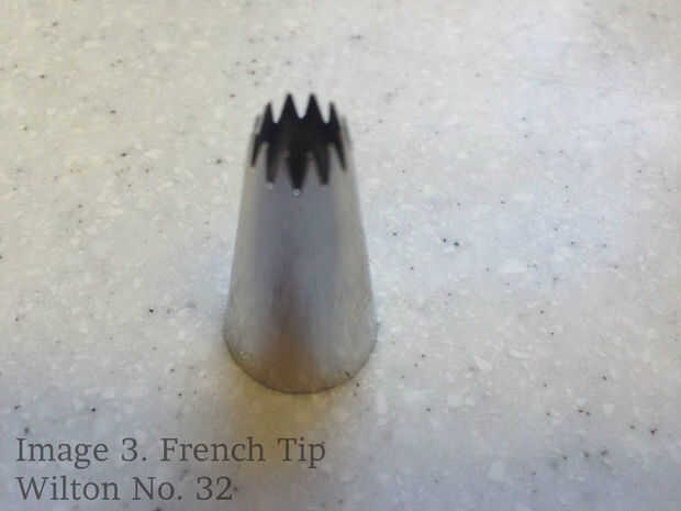 Punta de francés: Este Consejo será similar a la punta redonda como se verá, pero tiene una textura un poco más a él. Se recomienda una punta francés Wilton Nº 32 (ver imagen 3).