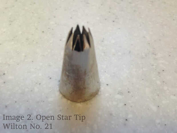 Abra punta de estrella: Este Consejo hará un remolino con volantes, añadiendo un poco de textura a tu glaseado. Recomendamos un viaje en estrella abierta Wilton Nº 21 (ver imagen 2).
