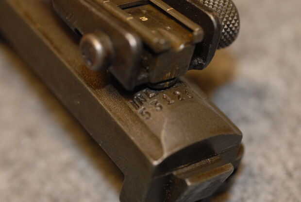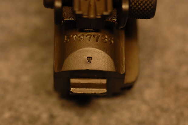 1. fabricante - esto puede ser difícil de encontrar, como el nombre del fabricante es cubierto con frecuencia por la mira trasera ajustable. Una forma es inclinar el receptor en diferentes ángulos para tratar de ver si algo se demuestra. Por ejemplo, en la primera foto, el principio de la palabra taxi "Winchester" verse bajo la mira trasera. En la segunda foto, la "U" para Underwood es apenas visible. En la tercera foto, el interior es casi totalmente legible... algunas son más fáciles que otros. Si absolutamente no se puede hacer hacia fuera el fabricante, no temas, que el número de serie puede decir que fabrica el receptor. Aquí está una lista de rangos de número de serie fabricante: