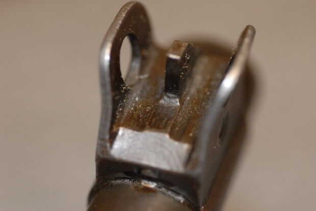 3. retenedor de la banda - uno de los dos tipos de consejos y pueden tener o no una línea desde la punta hasta el perno. Fotos 3 y 4 muestran los dos tipos de consejos, tanto con líneas. Foto 5 muestra retenedor con ninguna línea.