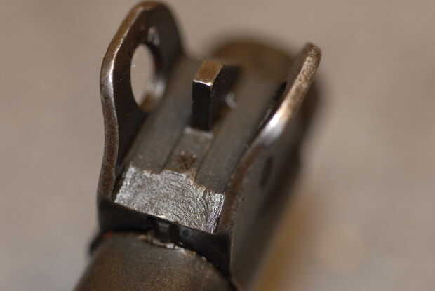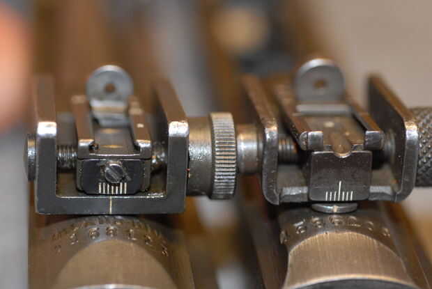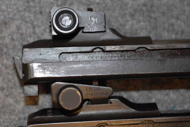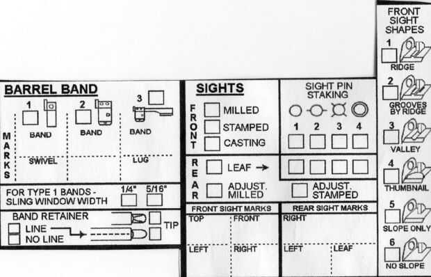 2. rear -indicar si es una hoja (AKA "tirón vista"), molido ajustable o sellado ajustable. El tirón es fácil de detectar, el molido es más grueso, con ángulos más agudos en la parte inferior y la vista estampada es más delgada que el molido, con más esquinas en las curvas redondeadas. Como antes, marque la casilla para el replanteo de pin de vista correcto e indicar cualquier marca en el espacio provisto en la parte inferior de la sección. Foto 6 muestra un alza de estampado, foto 7 muestra una vista posterior molido, Foto 8 muestra lado por lado (molido en la izquierda, estampado a la derecha), y Foto 9 muestra uno con el otro (molido en la parte superior, estampado en la parte inferior).