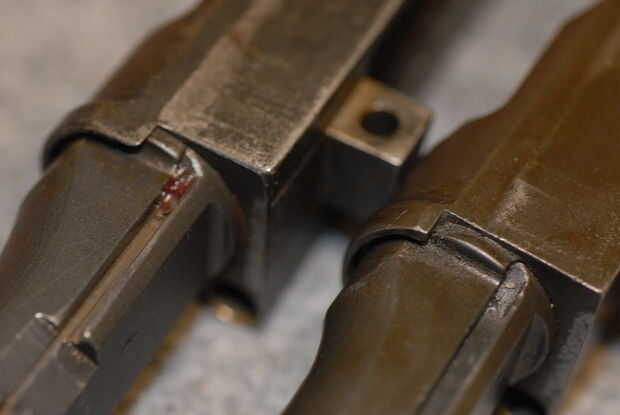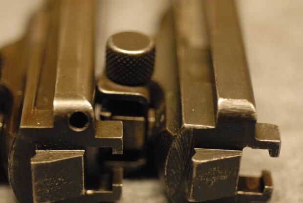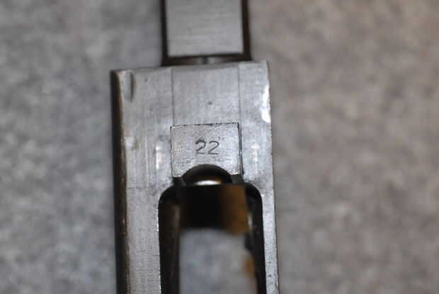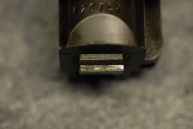 Detalle de la parte trasera a la izquierda. Lo siento, otra vez no tengo fotos de cada variación, pero se puede ver la diferencia en las variaciones de 9/16" y 1/4". sin la oreja. El oído debe ser fácil de detectar, basado en la foto 15, que muestra el 9/16 de pulgada en la parte superior y 1/4" en la parte inferior.