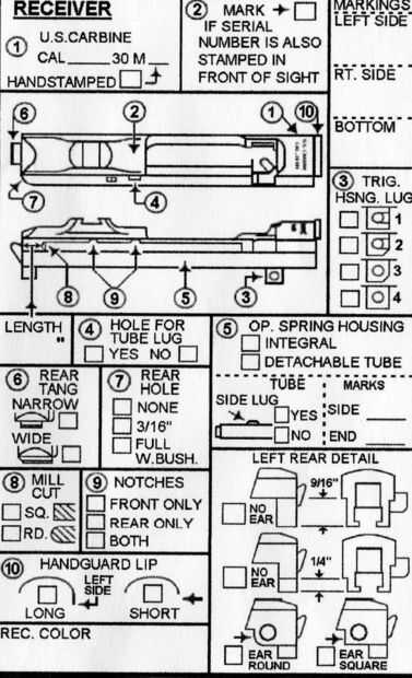 1. Estados Unidos carabina Cal ___ ___ de 30 M, introduce en los espacios exactamente como aparece en el receptor. 392Var receptores son infrecuentes, pero pueden determinarse observando de cerca los tipos de letra, espaciado, y si alinean. Tenga en cuenta que algunos receptores tienen un período después del "Cal" y el "30" mientras que algunos sólo tienen un período. Más armas en manos privadas será M1, aunque existen unas pocas carabinas M2 en manos privadas. Son bastante raros y muy costosos, relativamente hablando. Hacia el final de la producción, muchas armas fueron mano sellado ya sea con un 1 o un 2 para indicar que modelo era. Foto 1 muestra 3 receptores al lado, tenga en cuenta la diferencia en la fuente, el espaciado y otros detalles. Foto 2 muestra un receptor de Winchester con "Cal.. 30 M1 "(2 períodos), mientras que la foto 3 muestra un receptor marcado"Cal.30M1"con un período. La última foto muestra una mano con número de serie (gracias a EARRNHARDT3 de los foros CMP).