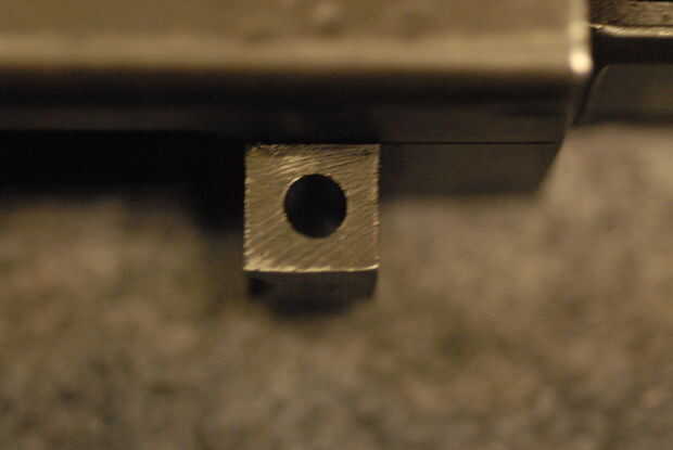 6. Tang posterior será amplia o estrecha. Sólo tengo una foto de la espiga estrecha, pero las lengüetas amplia ejecutará el ancho del receptor, como se muestra en el dibujo. Foto 6 es un estrecho tang posterior.