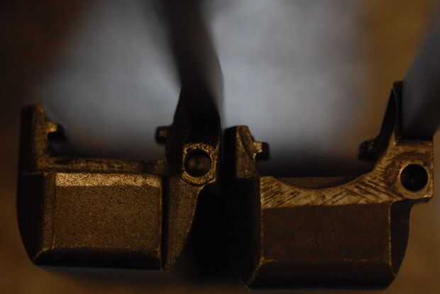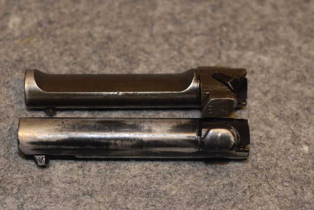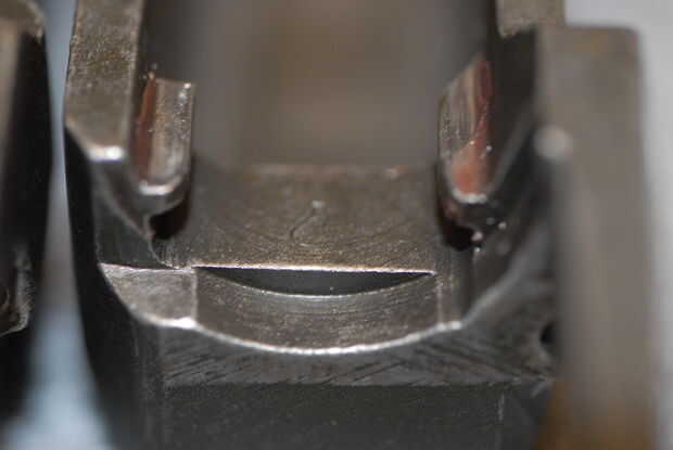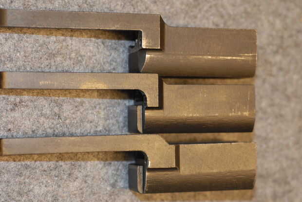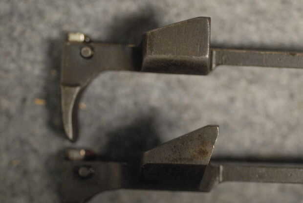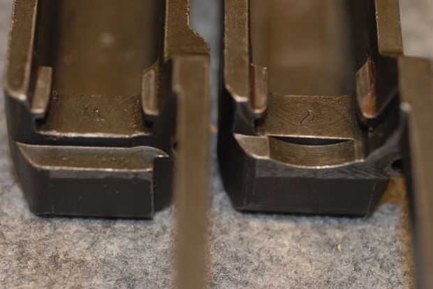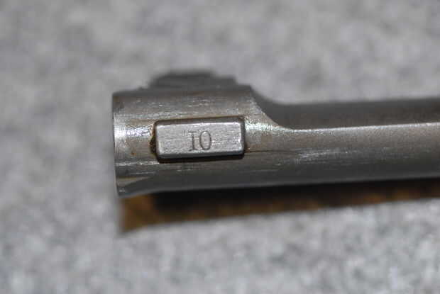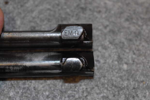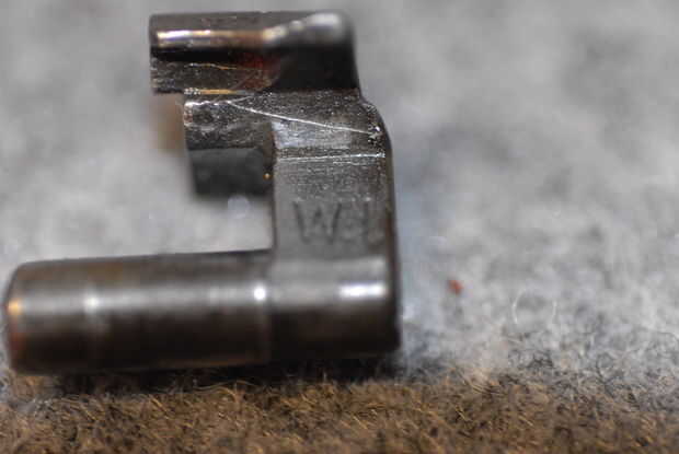 Percutor - Marque la casilla para el tipo, ya sea azul o blanco (sin terminar) y cualquier marcas de ves. Foto 10 muestra un percutor tipo 2, y la foto 11 muestra el código de un fabricante típico ("W" de Winchester en este caso).