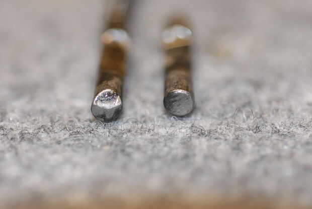 Plano o redondo, azul o parque.- Examinación externa le dirá si el perno es plano o redondo, azulado o parkerized. Fotos 1 y 2 muestran un plano, parkerized perno en la parte superior y un perno redondo, azulado en la parte inferior.