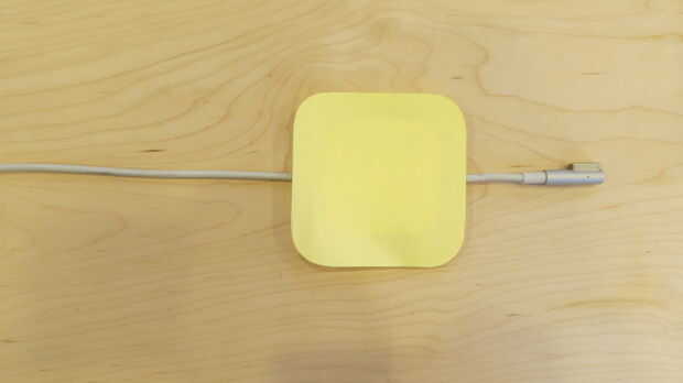 Pensando acerca de las características del material de concreto (líneas limpias, estética minimalista y peso) he encontrado inspiración en un producto existente por Blue Lounge llamado Sumo. Sumo es un producto poco inteligente que impide el caerse de su escritorio o tabla cuando no se utilizan cables del cargador. Mientras que la inyección moldeada Sumo usos micro almohadillas de succión debajo para pegarse literalmente a un escritorio, decidí que haría un peso de cable utilizando las características del concreto para resolver el mismo problema. Una maqueta sencilla con papelitos me ayudó a visualizar la escala que necesitaría para lograr un buen peso en concreto. También necesitaba averiguar cuánto la ranura por debajo sería necesario para permitir que un cable de carga se deslice hacia adelante y hacia atrás sin ningún problema; por lo tanto, las pinzas en la foto. Aterricé en un 3 "x 3" x 1 "forma con una ranura para cuerda que afilado de. 5" a. 15".