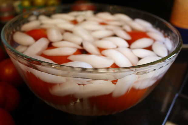 Recuerde añadir más hielo (y eliminar un volumen equivalente de agua para evitar derrames) sobre una base regular para mantener el baño de agua fría.