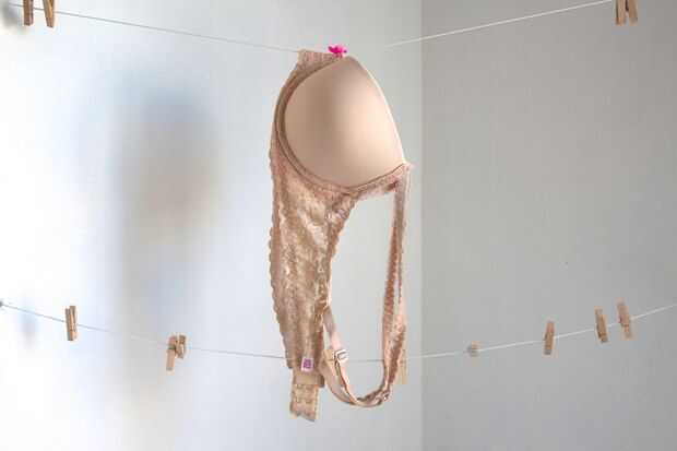 NO cuelgan para arriba por sus correas. Puesto que el sujetador es todavía húmeda y pesada, las correas pueden obtener estiró hacia fuera de tener que soportar el peso extra.