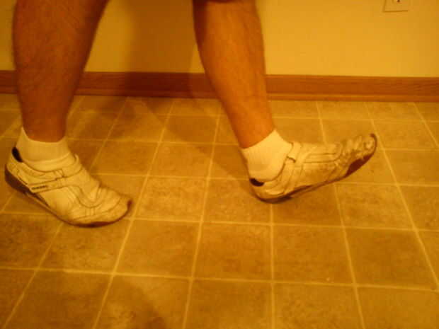 Congelar. Si recuerdan, desde la posición de relajación, usted debe haber comenzó con los talones elevados del suelo. Al final de su primer paso será su talón izquierdo en el suelo, los dedos del pie izquierdos será hasta en el aire y será la bola de su pie derecho en el suelo. ¿Es difícil equilibrar allí? Trate de no caminar sobre una viga de equilibrio, permiten más de una postura de esquiadores. Si está probando para el ISUCF "V" MB, ser clasificado en la fluidez de este movimiento. Si se realiza correctamente, usted será capaz de detener en cualquier paso y roca ida y vuelta entre sus pies como si fueran de los dos pies cada parte de un totter teeter. Con el primer paso hacia abajo, enrollar sobre el pie izquierdo y luego repita el paso anterior pero con la derecha del pie.