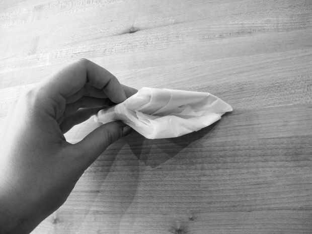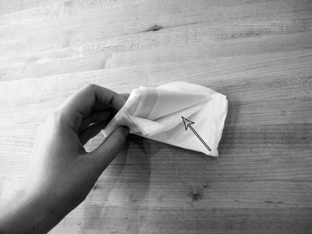 Encontrar el bolsillo en su triángulo y doblez a la pieza restante en su bolsillo.
