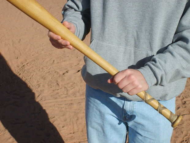Agarra el bat como lo haría si usted gira con la mano izquierda, ahora subir la mano izquierda hacia el centro del bate, por lo general aproximadamente un tercio de la manera desde la parte inferior.