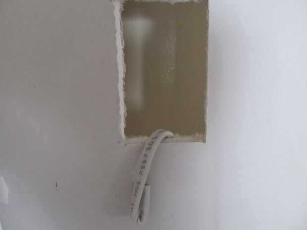 Ahora usted está listo para tirar el cable nuevo para su nuevo enchufe.  Esta es la parte más delicada de todo el proyecto.  Utilizando el destornillador de cabeza plana despegar la placa de cubierta de la toma existente y sacar el encendedor.  Cada caja eléctrica de plástico tiene dos orificios prefabricados en la parte superior e inferior.  Si el agujero no está ocupado con un alambre entonces usted tendrá que utilizar el destornillador para abrirla desde el interior de la caja.  Una vez que han hecho un agujero tome el extremo del cable nuevo y pliegan en la primera pulgada.  Utilizar los alicates en el extremo de un alicate para prensar abajo apretado.  Esto hará más fácil de empujar hasta el interior de la pared.  Introduzca este extremo en el agujero y mantenerlo lo más recto posible manipule que el alambre para arriba lo más lejos puede dentro de la cavidad de la pared por encima de la salida existente.  El nuevo agujero que hace debe ser lo suficientemente grande para meter la mano en y coger el extremo del alambre cuando se cierre.