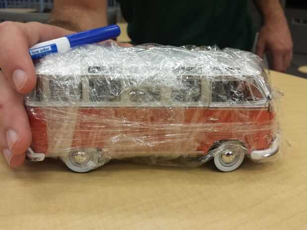 Nota: La primera vez que envuelva para arriba el coche el abrigo de Saran se pega en una tira muy fina, pero cuando usted consigue un par de rollos alrededor del coche el abrigo debe extendió a su tamaño normal.