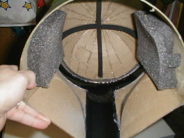 Este casco está hecho enteramente de cartón (a excepción de la visera), es muy ligero cuando termine y es muy cómodo. También es sorprendentemente grande-apenas puedo conseguir cascos mayoría sobre mi cabeza y este encaja con sitio de sobra.