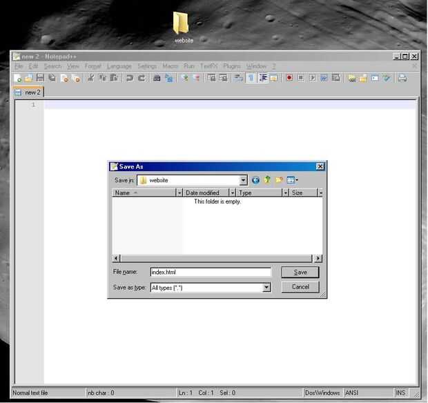 1) establece el lenguaje en HTML (lenguaje > HTML) 2) hacer una nueva carpeta en el escritorio llamado sitio web 3) Guarde el archivo hecho en Bloc de notas ++ como índice. HTML (mus tiene la. HTML) 4) Abra el archivo