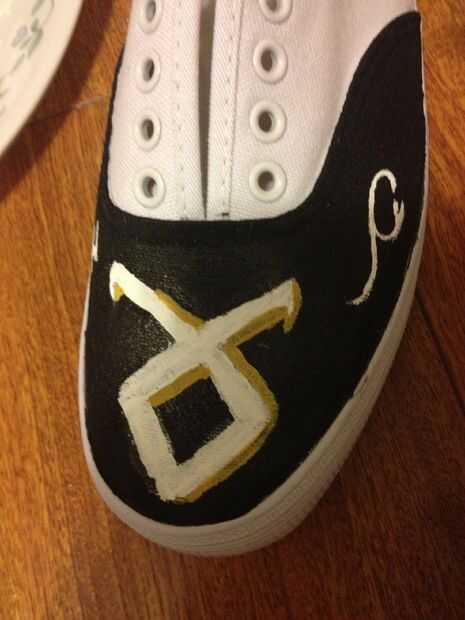 El todo del dedo del pie del zapato de la pintura negra, a continuación, añadir unas runas shadowhunter! Woot woot! Utilicé el angelical runa runa del amor y runas de velocidad para el dedo del pie