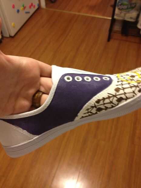 Ok ahora para un homenaje a la camiseta de sherlock de sexo. Usé el mismo pinceles que he utilizado para la pintura blanca en el primer paso. Hacer ambos lados y la lengua del zapato, dejando el talón vacío por ahora. Hice 2 manos para esta parte.