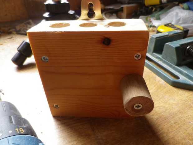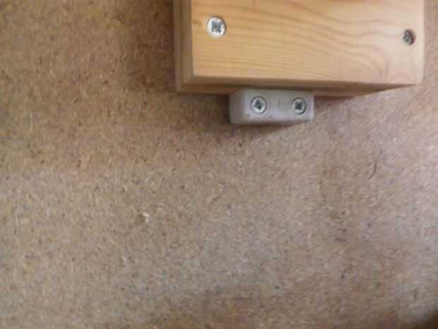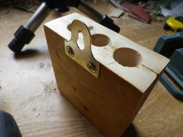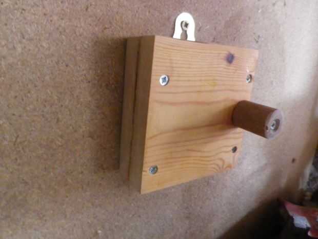 I cuatro agujeros perforados y poner 4 tornillos en a asimiento afiáncela con abrazadera juntos. Me frotó luego una capa de aceite de teca y añadieron el pasador y dos fijaciones de pared.