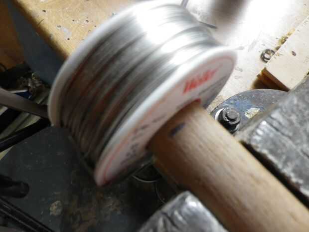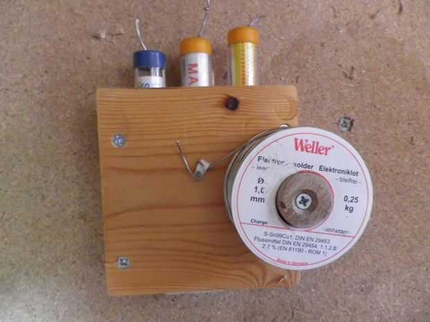 He añadido un pared pinza/clip del alambre para sostener la soldadura que está en el carrete.