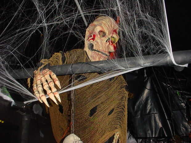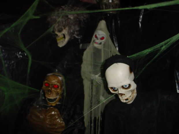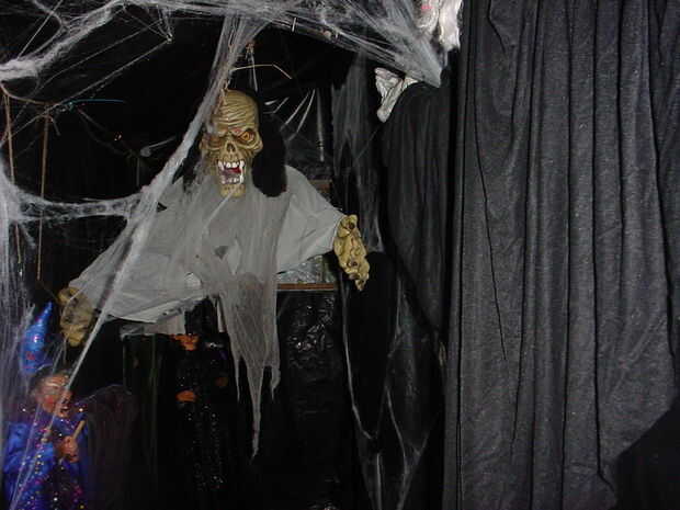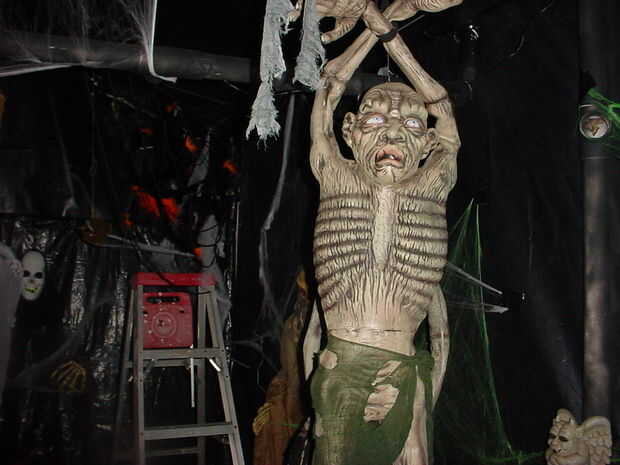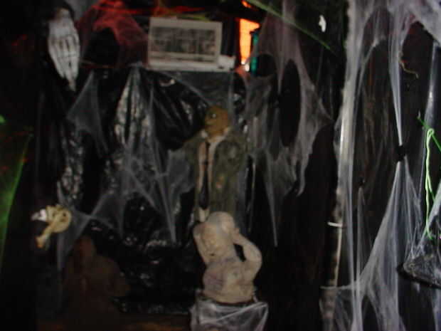 Recordar esos caños de pvc desde el principio? Se formaron 4 paredes dirigir nuestras víctimas abajo 5 salas con diferentes figuras, telarañas y rincones oscuros de nuestra scarerers (es que una palabra?) que se esconden en. Todas nuestras "tiendas" extensiones a las patas para levantar las barras laterales a 6 '2, que pone el centro de las grandes carpas techo aproximadamente 16' arriba... gran espacio para ghouls "volando", también hace un gran lugar para montar luces negras y un par de luces estroboscópicas.