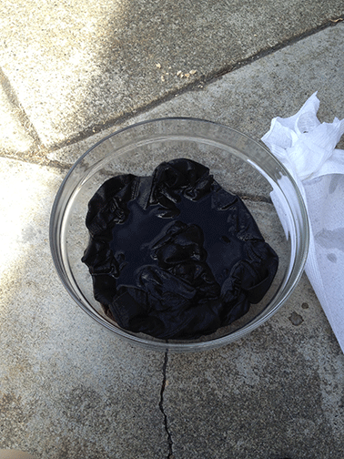 Tirar de la camiseta de la Junta y poner la camiseta en el tazón de fuente de peróxido. Mantuve mis guantes esto estar del lado seguro del no contacto con productos químicos.