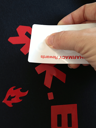 En esta etapa puede presionar el vinilo en la camiseta para la buena medida usando su tarjeta de plástico sólo para asegurarse de que no se va a separar inmediatamente cuando la camisa inevitablemente las arrugas durante esta aventura.