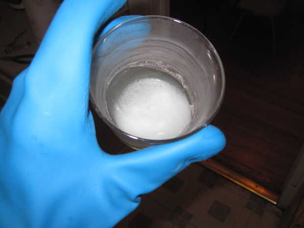 Esto es lo que parece, en un vaso un removedor de pintura.  Tenga en cuenta el guante de la seguridad, + 3 en los tiros del ahorro.