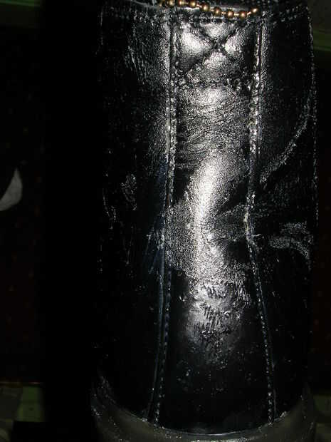 Si usted puede recordar que flex lo las botas alrededor de la parte posterior de la costura y alrededor del dedo del pie del casquillo donde se forma la curva natural.  Esto ayudará a ablandar el cuero y más el aceite de visón ayudan a absorber.