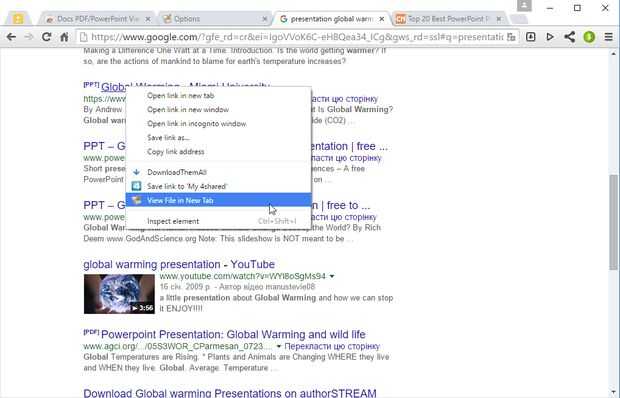 Cuando encuentre un archivo PPT disponible en línea, haga clic en el enlace y seleccione Abrir con visor de documentos PDF/PowerPoint.