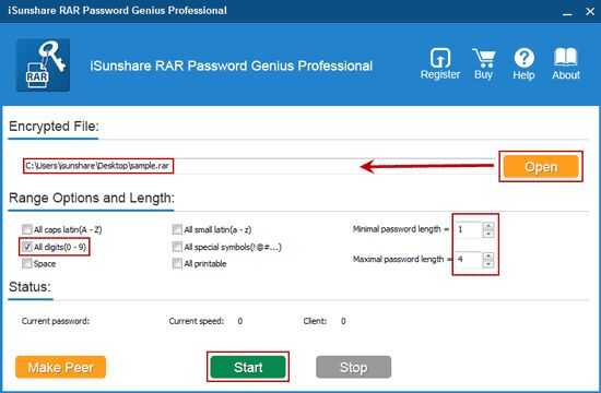 6. haga clic en Inicio botón de programa principal, RAR Password Genius profesional.