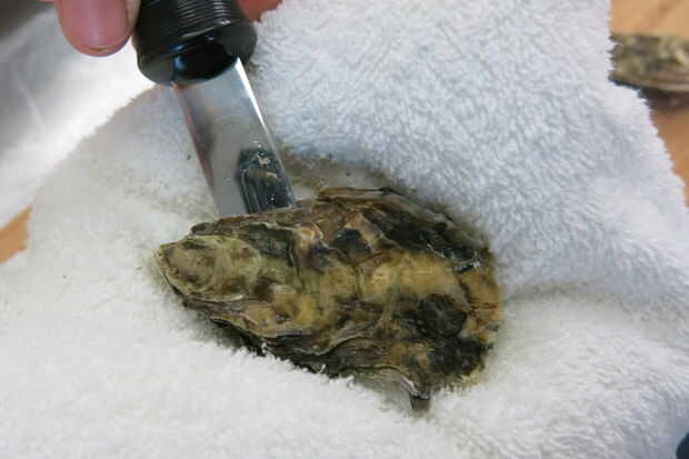 Usted querrá tener un cuchillo de ostras con una robusta gruesa, hoja. Utilice guantes o colocar las ostras en una toalla para proteger las manos.