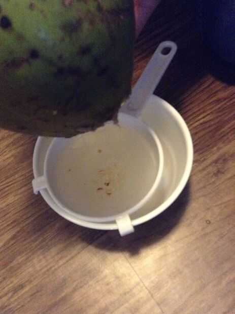 Paso 4: escurrir el jugo de coco