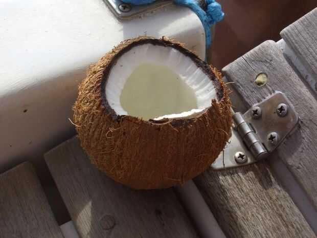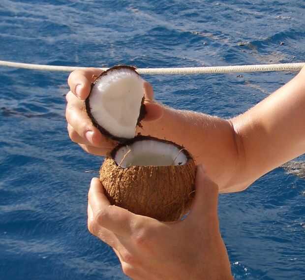 - Ahora puede beber la leche de coco y comer la carne blanca (es que llama asi?) de la parte superior del coco.