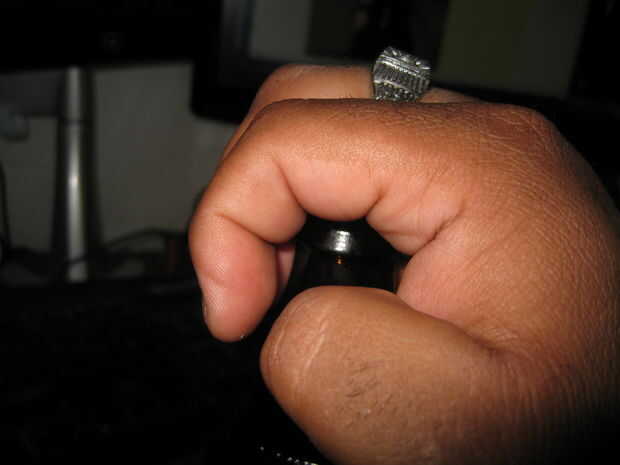 No es un movimiento de giro pero algo se siente como él. Básicamente puede cerrar la mano y dejó el anillo de empuje un extremo hacia arriba y fuera de la botella. Los dedos ayudan a mantener todo donde debe ir y te ayudan a corral la tapa de la botella una vez que se.