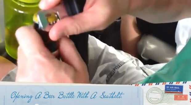 Cómo abrir una botella de cerveza con un cinturón de seguridad (1 / 1 paso)