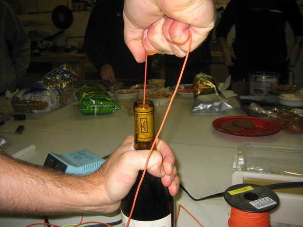 2 prueba y enrolle la cuerda alrededor del corcho.