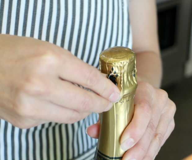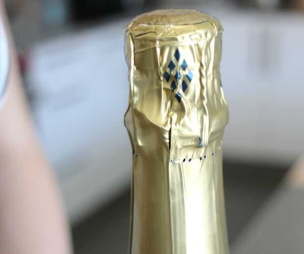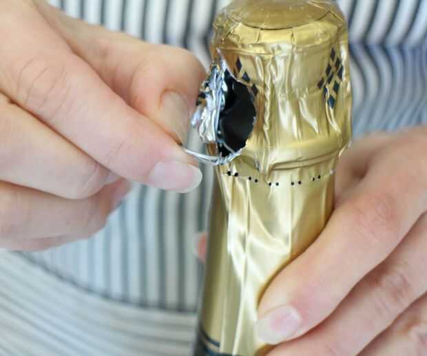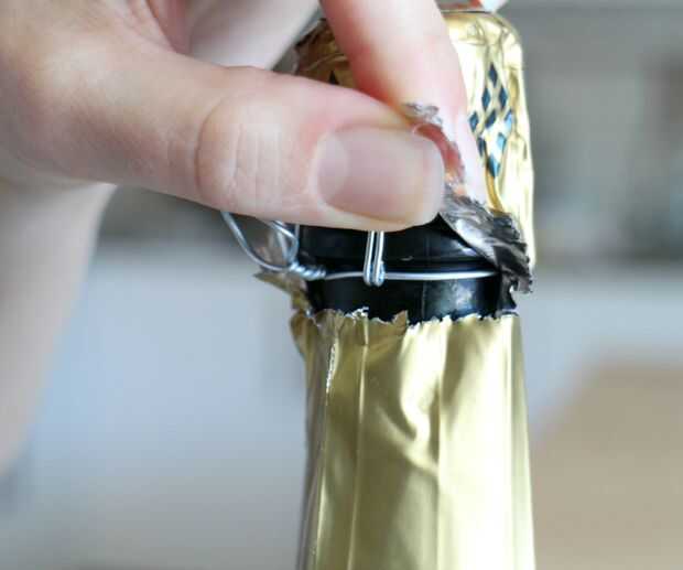 Diversas botellas son perforados en puntos diferentes en la parte superior de la hoja. Si no hay una pestaña obvio y fácil para tirar para retirar el papel, me gusta encontrar la ficha de toque de la jaula de alambre y abrir la hoja poniendo mi uña del pulgar en la pestaña y tirando de él hacia fuera, a través de la lámina. Entonces son capaces de desenvolver y retire la parte superior de la hoja.