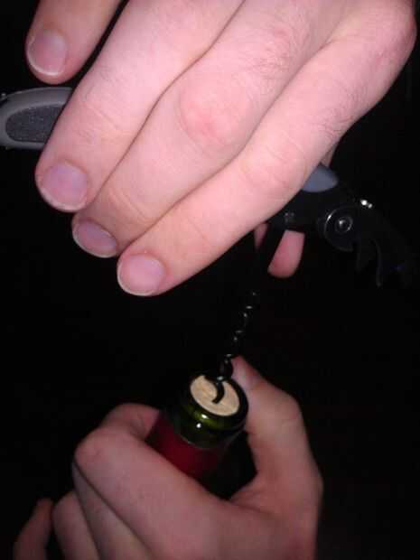 una 1 torcedura. La razón para salir de un giro del sacacorchos en el corcho es en un esfuerzo para no empujar el metal completamente a través del corcho. Lo empuje residuos de corcho en el vino y contaminarla.