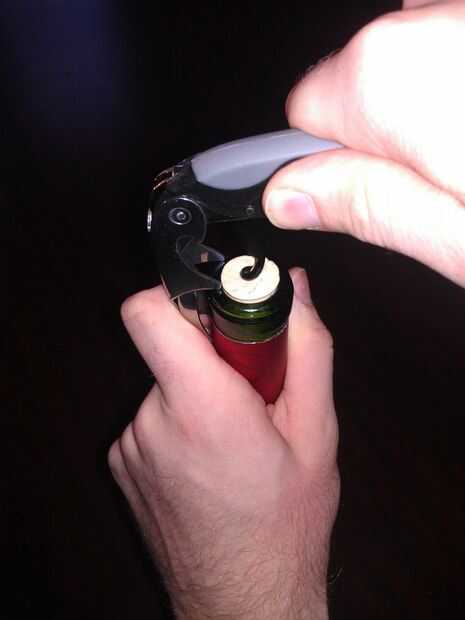 Coloque el primer paso del sacacorchos en el labio de la botella. Use suficiente presión con una mano a palanca el corcho de la botella con el primer paso como el fulcro. Tenga cuidado de no doblar demasiado el corcho y el riesgo de romperla. Simplemente necesita comience a tirar el corcho de la botella y no necesitan más de la mitad de ella en este paso.