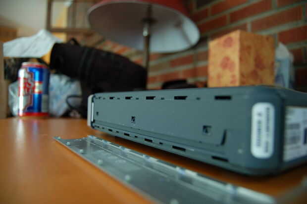 Deslice el lado hacia la parte posterior de la unidad. En el disco era muy difícil. Encontré que era capaz de conseguir cosas para mover el coche a un lado y aplicando presión hacia abajo en el lado que estaba tratando de deslizar. Esto alivia algo de la tensión en las fichas que sostienen el lado en su lugar. Tratando de mantener y ser paciente, o de lo contrario usted puede terminar con algunas pestañas rotas (como hice yo, en mi primer intento).