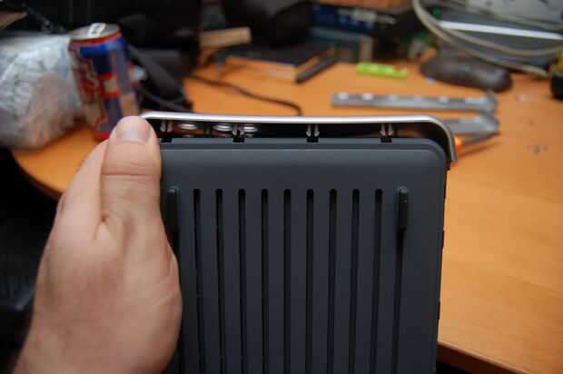 Quitar el frontal de plata. Después de apalancamiento ambos lados utilicé mis pulgares a mover hacia fuera.