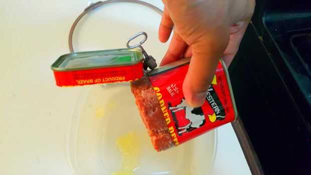 Ver la lata está abierta y la carne de vacuno está hacia fuera! Para el resto del mundo esto no es un brainer. Para mi celular cerebral única, era un rompecabezas. Durante casi 4 décadas no pude abrir una lata de carne sin usar un abrelatas o sierra para metales.