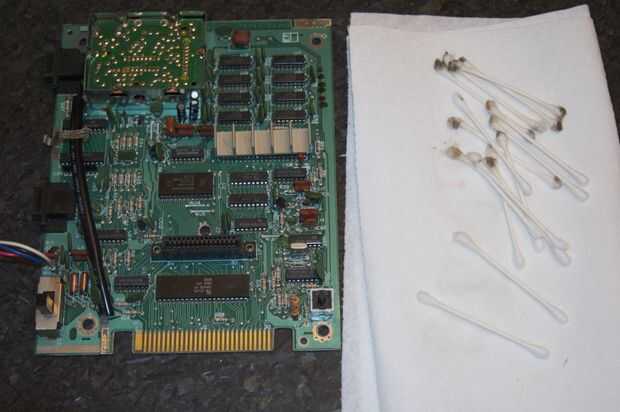 Para la placa madre, intente primero algún aire. Entonces, si usted quiere, usted puede ir sobre él con q-tips y alcohol isopropílico. Lo hice, pero no fui loco. Acabo de hacer que no fuera repugnante.