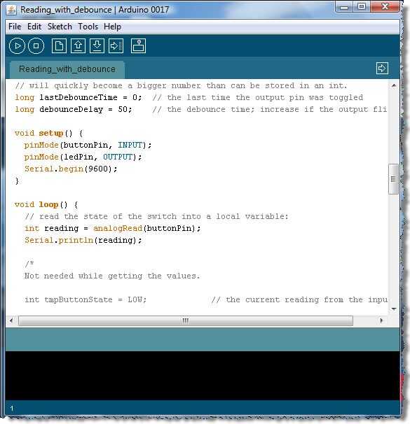 Usando la resistencia de 33K con mi botón, tengo valores que oscilan entre los 767 y 768.