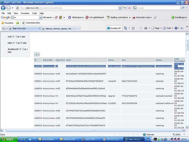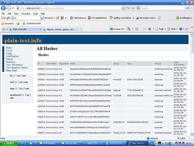 Se le enviará a una lista de hashes, tuyo es, probablemente, en la parte superior (el primera lm)