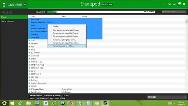 1. Haga clic derecho sobre las canción/canciones destacadas