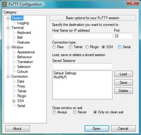 Ahora, en su computadora que desea utilizar para conectarse a su Pi, descargar una aplicación llamada Putty. Es un cliente SSH. Es lo que vas a usar para conectar con el Pi. Usted puede descargar aquí: http://the.earth.li/~sgtatham/putty/latest/x86/put...